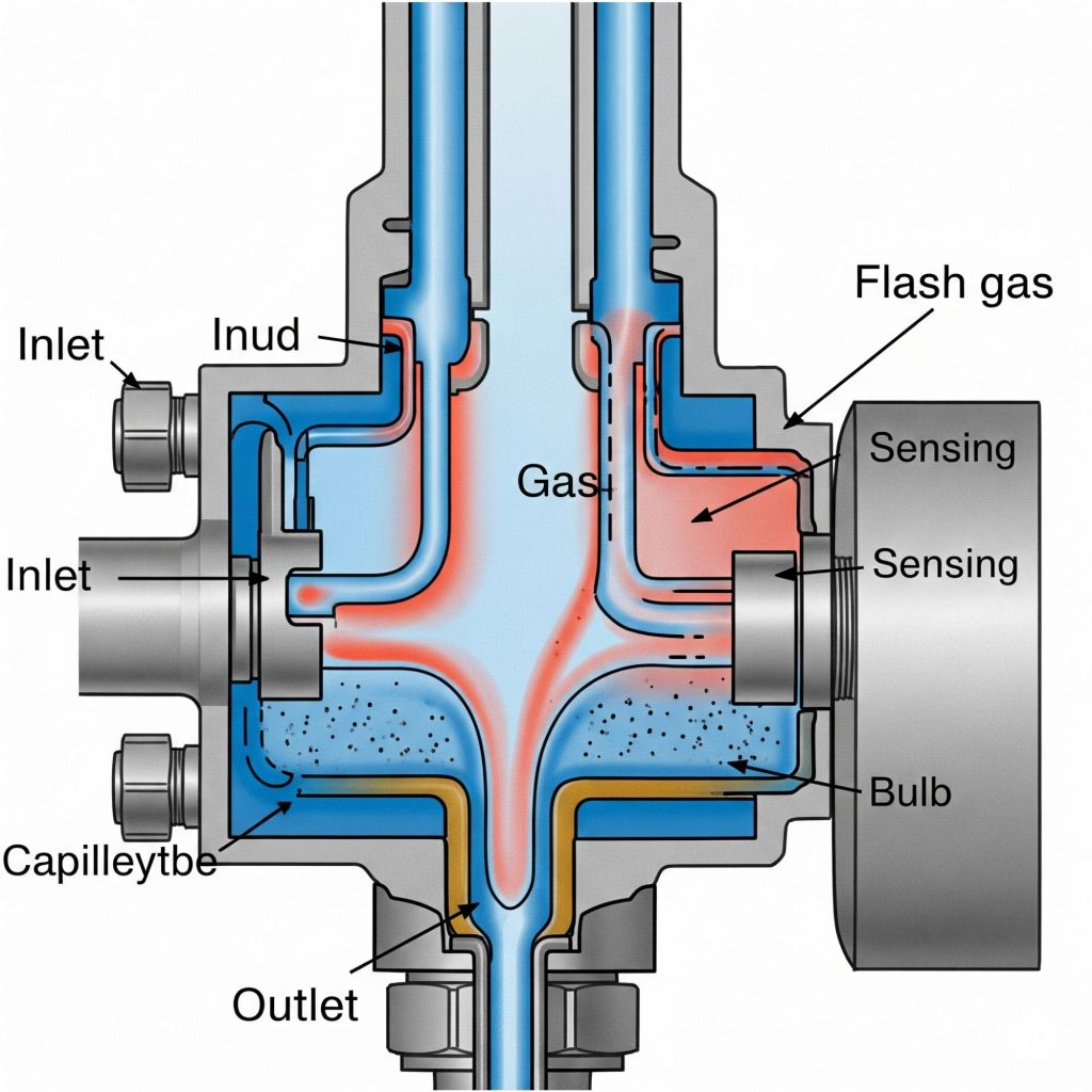 🔩 Si la VET es muy grande pierde el control de presión ya que deja pasar refrigerante líquido excedente, esto va a generar burbujas en la línea de líquido.